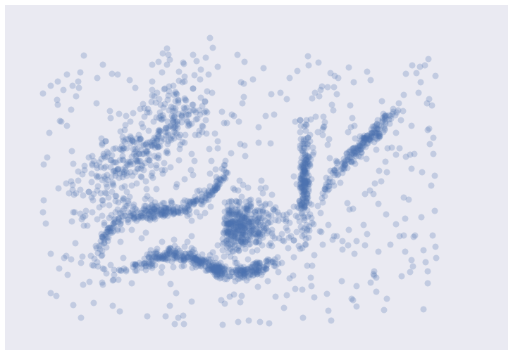 Take a look at the image below (courtesy of Leland Mcinnes). You can probably see which points should be grouped together but some points clearly look like they don’t belong to any groups.
