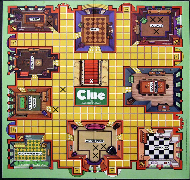 | Colonel Mustard | 0 | 1 | 0 | 0 |